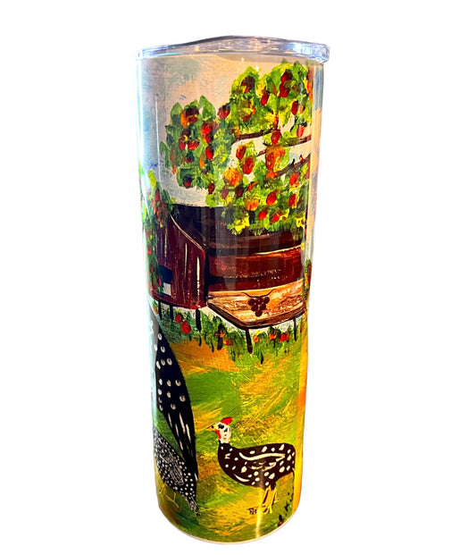 Art Painting Guinea Fowl Barn Scene Stainless Tumbler Cup Gift
