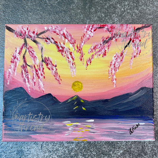 Sunset Cherry Blossoms Original Acrylic Painting 11x14