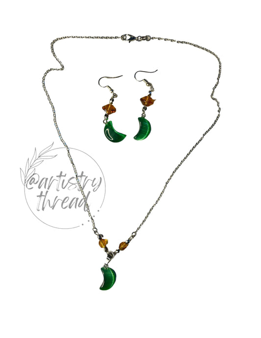 Malachite Moon Gemstone Necklace & Earrings Handcrafted Set