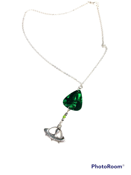 UFO Alien Guitar Pick extraterrestrial Handcrafted Necklace