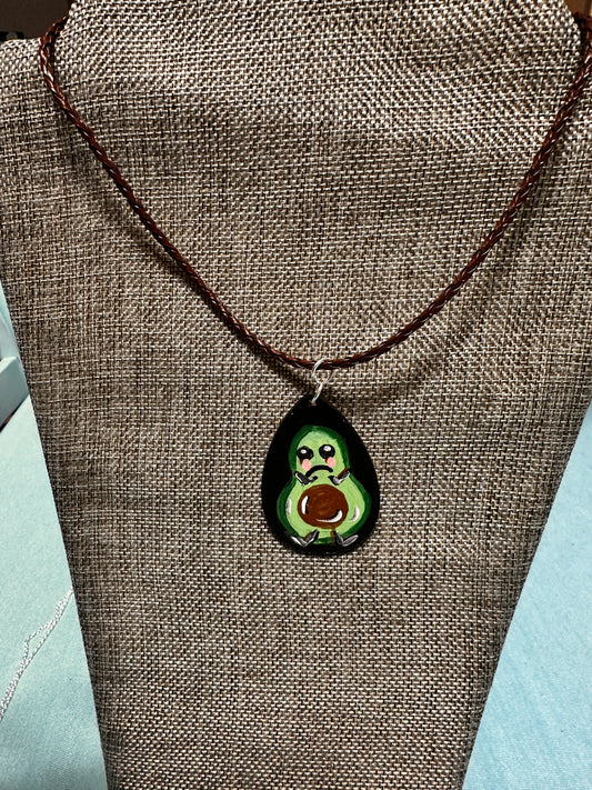 Cute Avocado Hand Painted Handmade Art Necklace OOAK